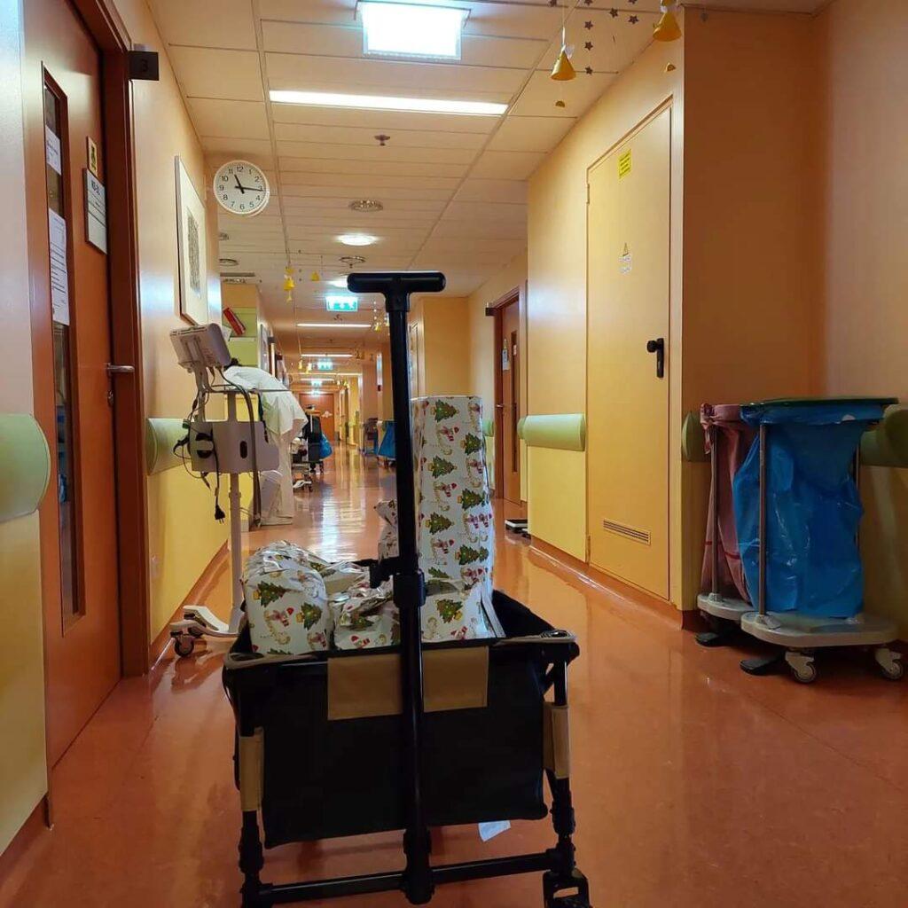 Že zgodaj v decembru smo pridni pomočniki napolnili dvorano kulturnega doma na Visokem in v lep zavijalni papir zavili goro daril. Veliko smo jih že razdelili Junakom na dogodku na Ljubljanskem gradu, danes pa smo Dedka Mraza pospremili tudi na hemato-onkološki oddelek Pediatrične klinike v Ljubljani. Z darili smo razveselili otroke, ki so trenutno v bolnišnici ter njihove starše. Oddelčna vzgojiteljica je obljubila, da bodo preostala darila razdelili tudi otrokom, ki bodo na zdravljenje prišli v prihodnjih dneh in po praznikih.