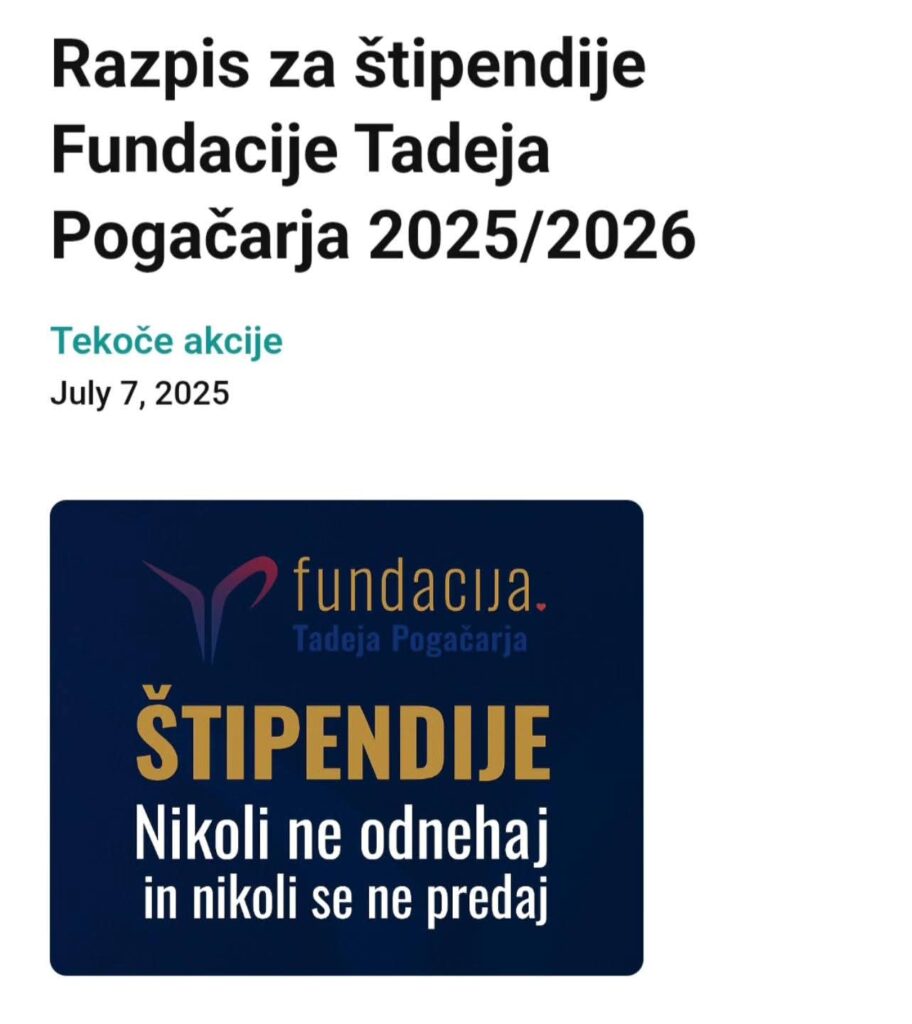Fundacija bo v šolskem letu 2025/26 podelila: